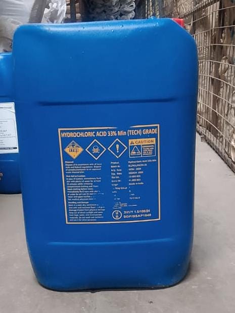Hydrochloric Acid (HCl) is a clear, highly corrosive mineral acid used extensively in metal cleaning, chemical processing, pH control, and water treatment. At a 33% concentration, it offers an ideal balance of strength and handling safety for industrial and commercial applications.